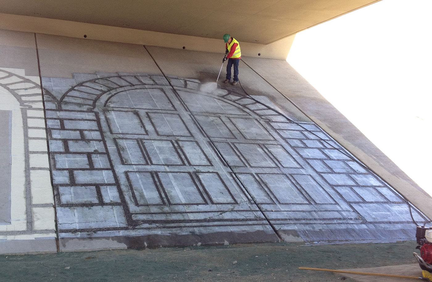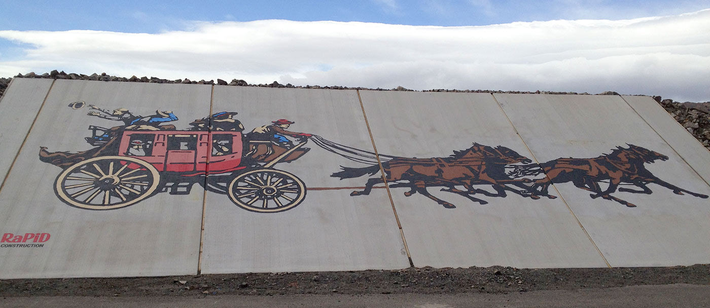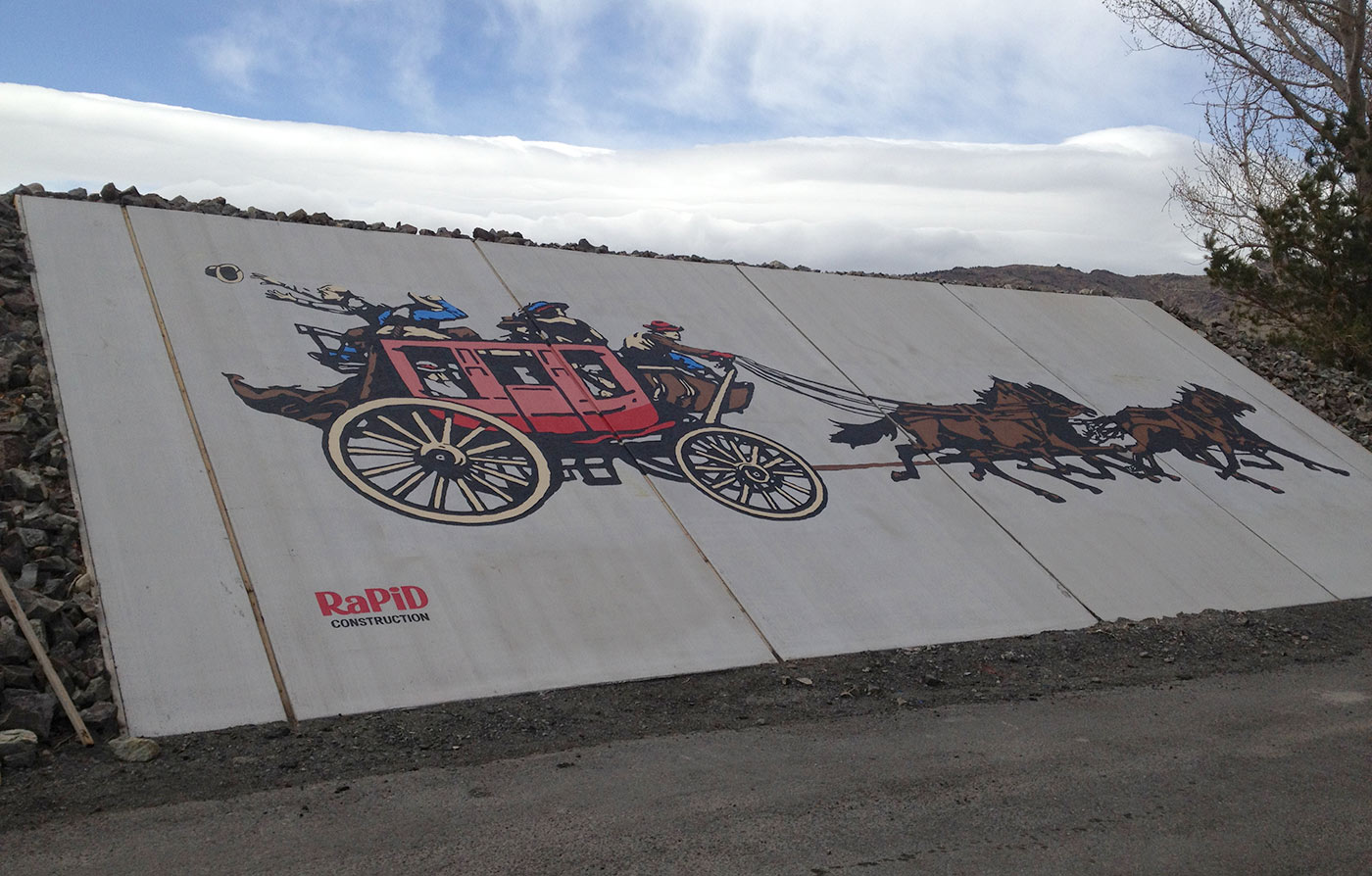 Carson City Highways Gary Newell Designs worked with the Carson City government to create historical-themed designs and etchings on underpass embankments.